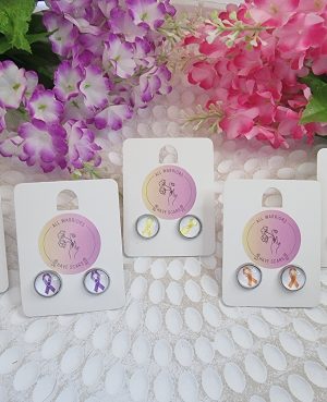 Cancer Ribbon Button Studs – White – Assortment 2