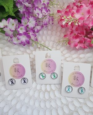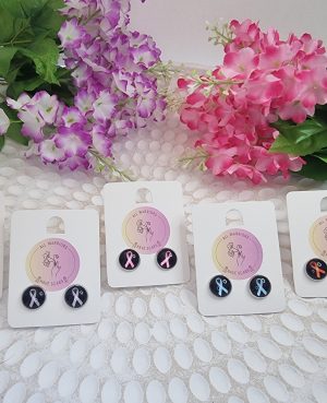Cancer Ribbon Button Studs – Black – Assortment 2